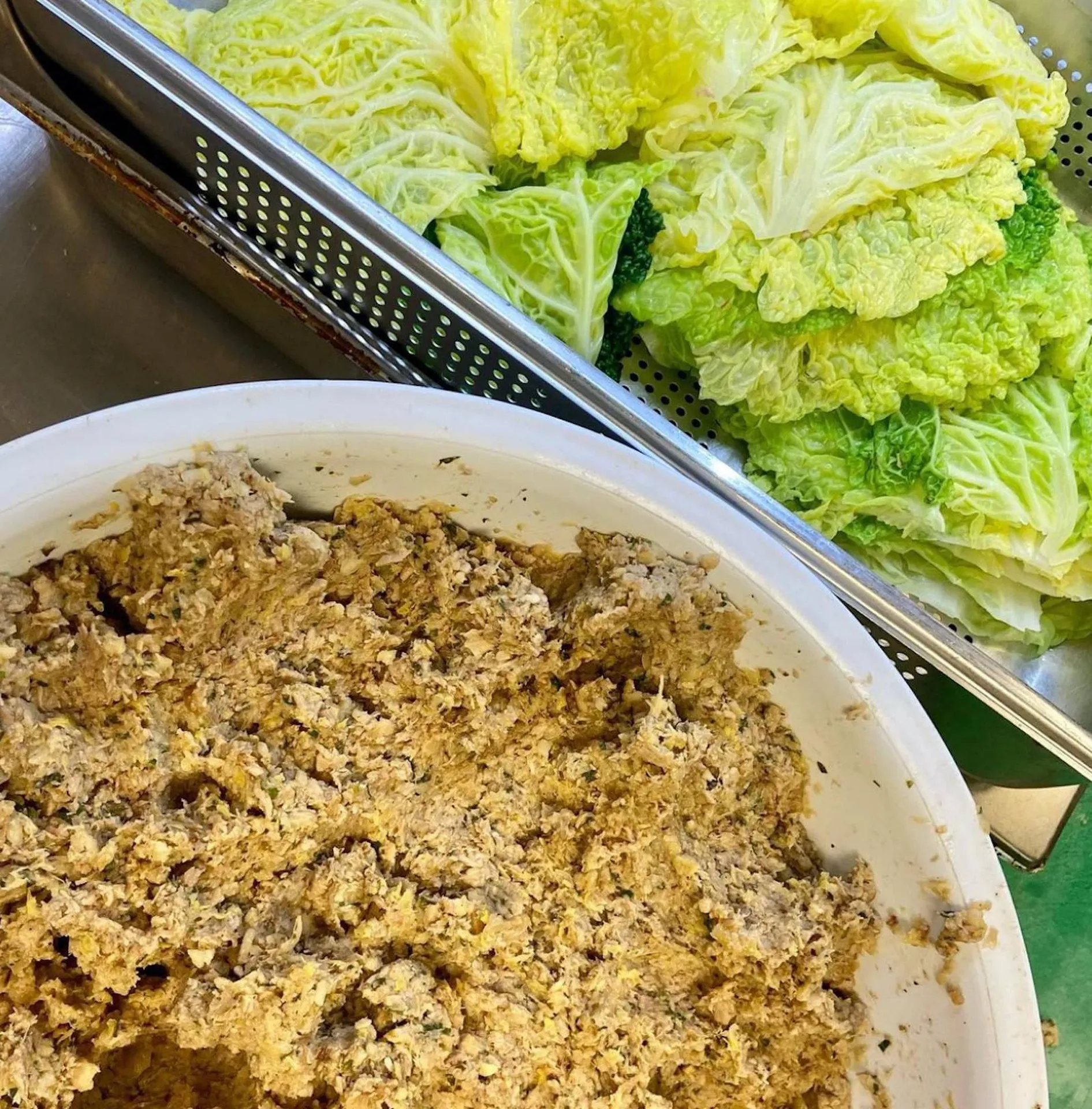 Les choux sont l'élément essentiel qui donne aux Capoun leur caractère unique. Traditionnellement, les feuilles de chou sont blanchies pour les rendre plus souples, facilitant ainsi la confection des petits chaussons. Ils ajoutent une saveur délicate et une texture tendre à l'ensemble du plat.