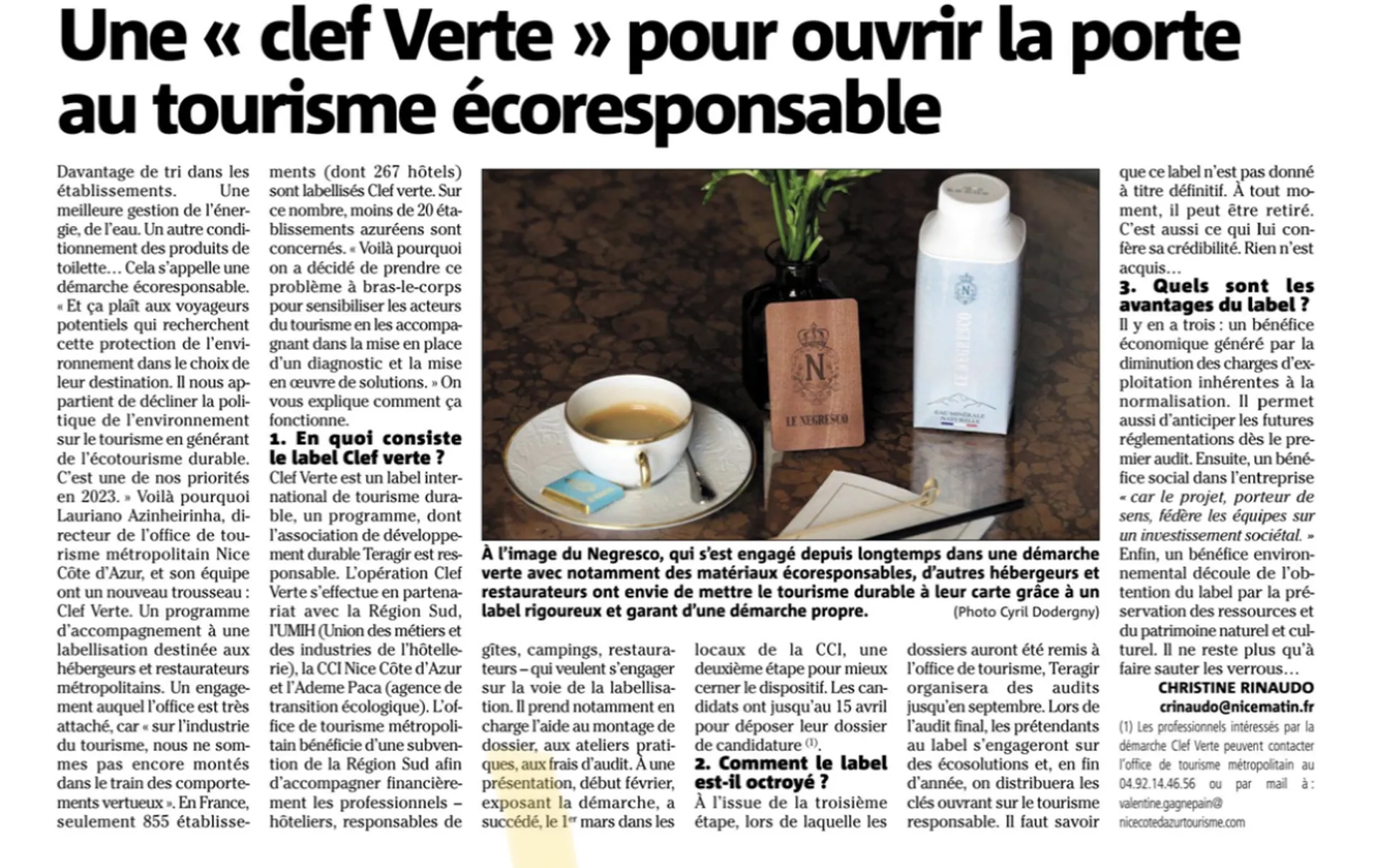 Voilà pourquoi Lauriano Azingeririnha, directeur de l'office de tourisme métropolitain Nice Côte d'Azur, et son équipe ont un nouveau trousseau : Clef Verte. "